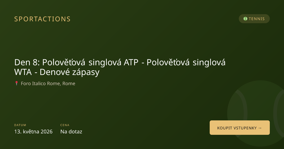 location_onForo Italico Rome, Romecalendar_today13. května 2026verifiedTermín potvrzen